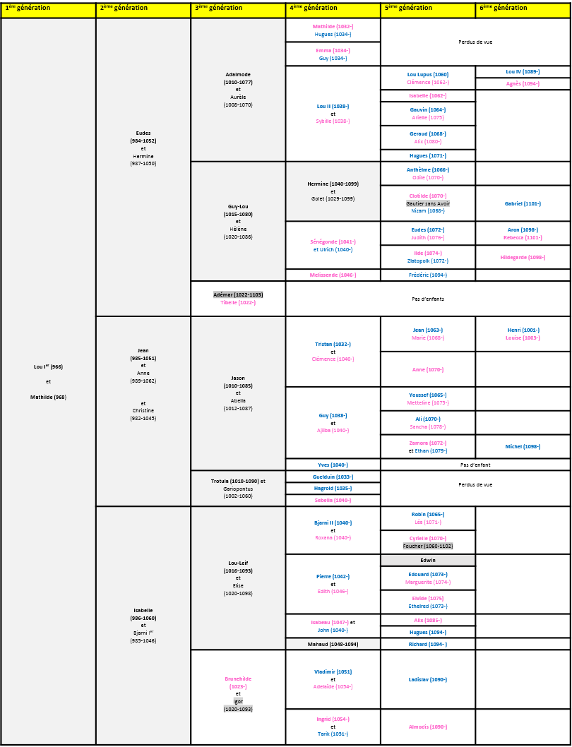 Les personnages encadrés ont réellement existé, les non-encadrés sont fictifs