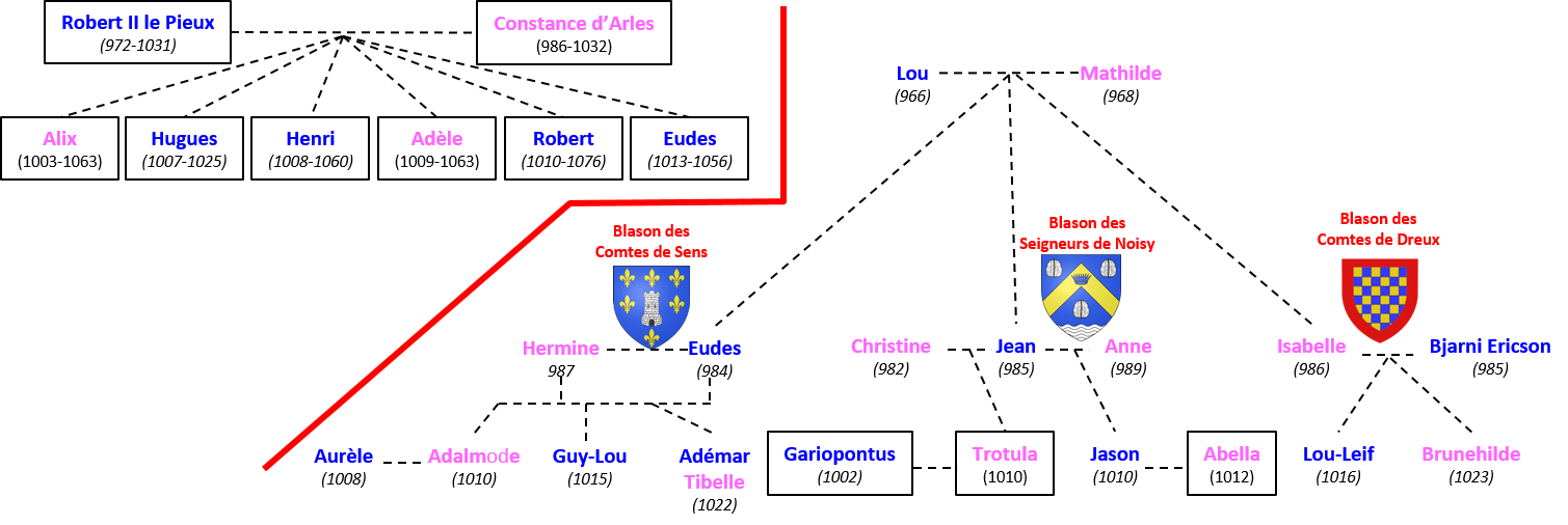 Les personnages encadrés ont réellement existé, les non-encadrés sont fictifs